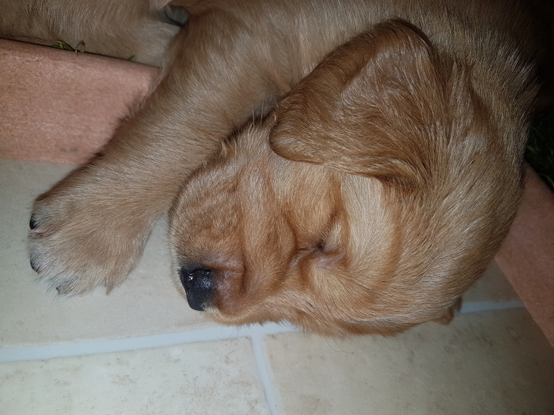 Das ist unsere kleine Winnie, die im Rudel bereits voll integriert ist, nicht nur im Hunderudel, sondern wie man sieht, ebenfalls im Menschenrudel. Wir freuen uns, die beiden zusammen aufwachsen